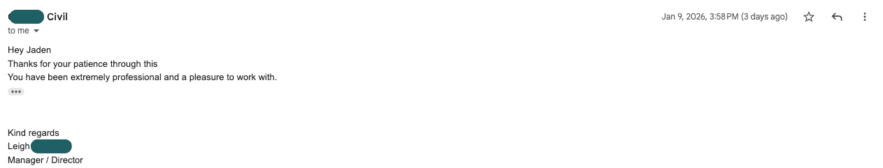 First time getting finance for my business, so I had no idea where to start or what I needed to do before picking up the excavator. Jaden and Ella spent 45 minutes on the phone explaining everything in detail. A day and a half later, the finance was settled!!!